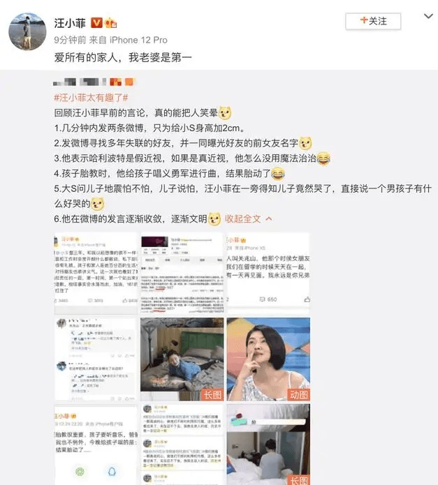6月7日,汪小菲转发了一条微博,内容是微博博主对其有趣言论的整理,汪小菲转发后还配文:“爱所有的家人,我老婆是第一。”似乎在努力挽回婚姻,不过发完可能因为转发内容不妥,就删除了。看得出来,汪小菲求生欲满满了。