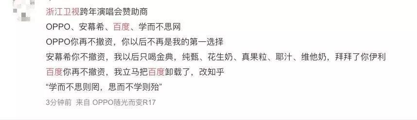 牵一发而动全身,不仅被传的赞助商遭殃,连其他平台的赞助商,都被网友一一曝出,甚至还直言要求赞助商撤资,否则就要用实际行动,来抵制这些品牌。浙江卫视的默不作声,激怒了网友们,现在站队也变得尤为重要,如果站错队,品牌形象都将受到影响。
