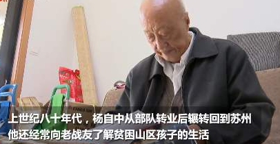 89岁的杨自中是苏州一名退休教师,从1990年开始资助贫困山区学生,30年里他跑了云贵川多地,捐了60多万,资助150多名学生。 杨自中说,将来还要捐献器官。