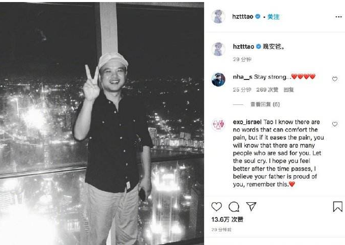 病故前,黄子韬一直未透露父亲的情况!直到处理完父亲的后事。黄子韬晒出一张父亲的黑白照,向父亲道了一声“晚安”。之后又在微博上发长文袒露心境,黄子韬表示自己不会倒下,父亲打下的基业绝不会在自己手中断送。