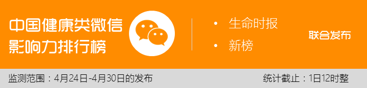 为满足不同人群对健康信息的多元需求,辅助管理者、发布者、读者等各方进行甄别,自2015年1月起,生命时报与新榜每周联合发布“中国健康类微信影响力排行榜”。