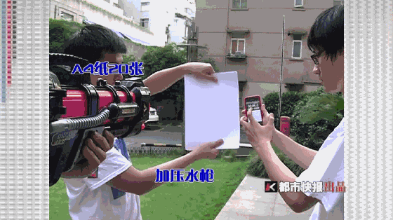 尤其是高压水枪极易射伤眼睛。市场上的水枪射程基本都在7.5米以上,就能普通水枪几秒内也能击穿1张A4纸。