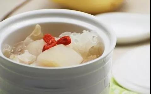 做法:银耳提前用冷水泡开,撕成小朵。将银耳放入锅中加水煮至软烂再加入冰糖。雪梨切块、百合洗净放入继续煮至雪梨变软即可。