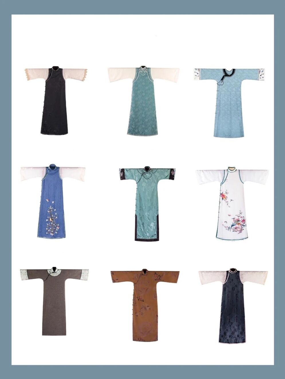 现在我们对旗袍只是分为“传统旗袍、改良旗袍”,很少有人知道古法旗袍。古法旗袍是清代时期的服装慢慢演化过来,而我们现在市面上大部分的旗袍都是传统旗袍和改良旗袍,而古法旗袍与之有明显不同的。
