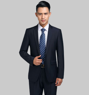 男生的西装建议你选择那种深蓝色或黑色的,这种颜色适合大多数场合穿。很多单位,公司制服都是这种颜色,款式方面,就是大众化的商业装,职业装就可以。