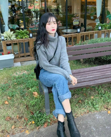 烟灰色的小高领毛衣简约大方,不管是单穿or做内搭都很nice,搭配牛仔裤和小黑靴,素简耐看。