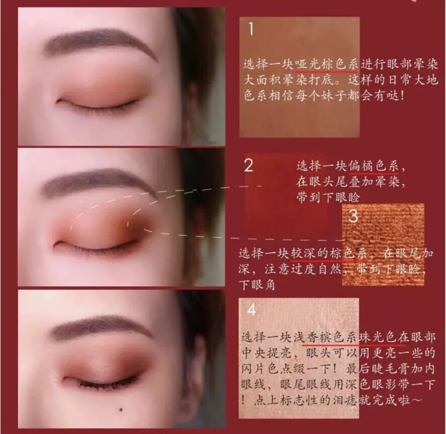 眼妆大范围晕染,一定要画内眼线,这样结合显得眼睛深邃吸睛,睫毛不够可以假睫毛凑,