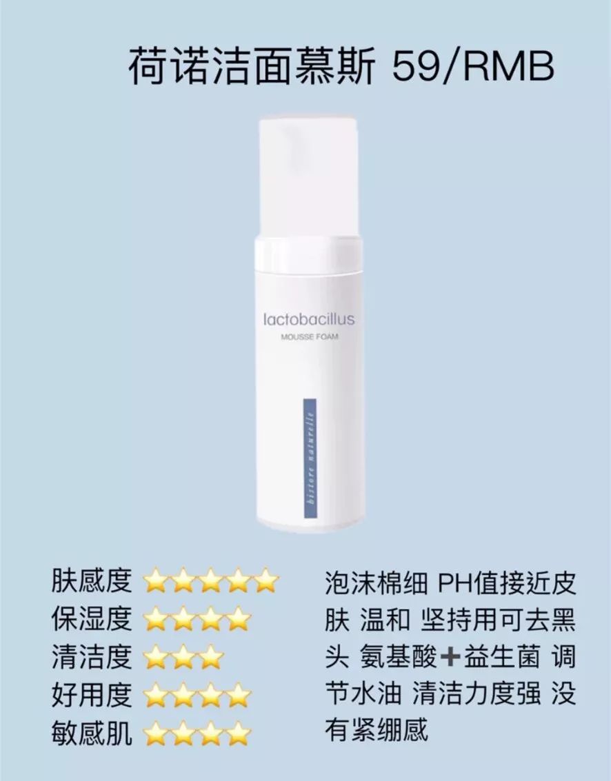 这是个洁面慕斯,按压出来就是很绵密的泡沫,像云朵一样,PH值很接近皮肤,很温和,敏感肌友好,还有一点去黑头的作用,坚持用鼻翼两侧的黑点点确实少下去很多