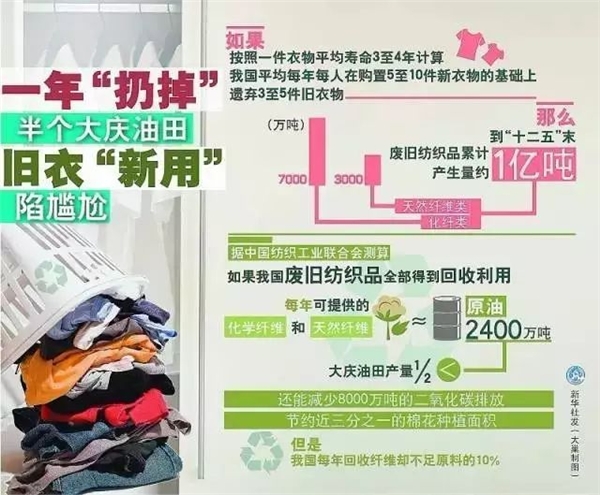 首先来说下,咱们的衣物的材料主要化学纤维,难降解且焚烧后产生大量的有毒气体造成严重的空气污染,随意丢弃时间久了会造成土壤和地下水的污染。中国每年约有技几十亿件废旧衣物,但被处理的比重不足10%,废旧衣物回收迫在眉睫。