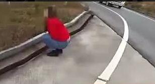 民警上前询问蹲在地上的驾驶人,发现其表情痛苦。