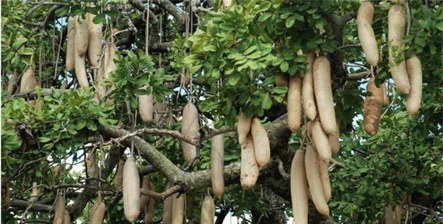 这种植物的果实,很像是一根一根的香肠一样悬挂在树枝上,所以才被当地人称之为香肠树。不过这种果实,和大家常吃的香肠完全不同。
