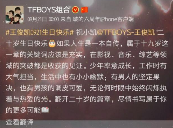 漫雨春花正年少,双十欢歌心意高”如果十八岁代表成年,那么二十岁则代表无所不能。过去的一年你用作品和舞台向我们证明你的进步与成长,相信20岁的你会用百分百的努力向我们证明你的坚强。但你要时刻记住,即使你现在在成为星星的路上奔跑,但你依然是我们可以依靠的月亮。