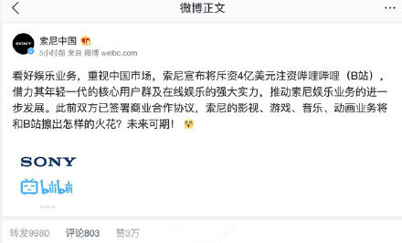 作为综合性的跨国集团,索尼旗下的游戏、电影、动画、音乐等业务,都与B站的“属性”高度契合,这也是B站屡次选择与索尼合作的重要原因。通过与B站多年的深入合作,索尼对B站在中国作为二次元内容窗口的重要战略地位也给予了高度认可,因此才肯投4亿美元进来,并选择在多个领域与B站深化合作。