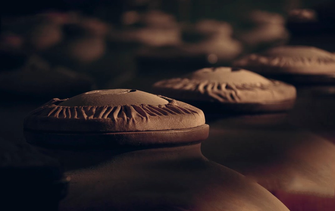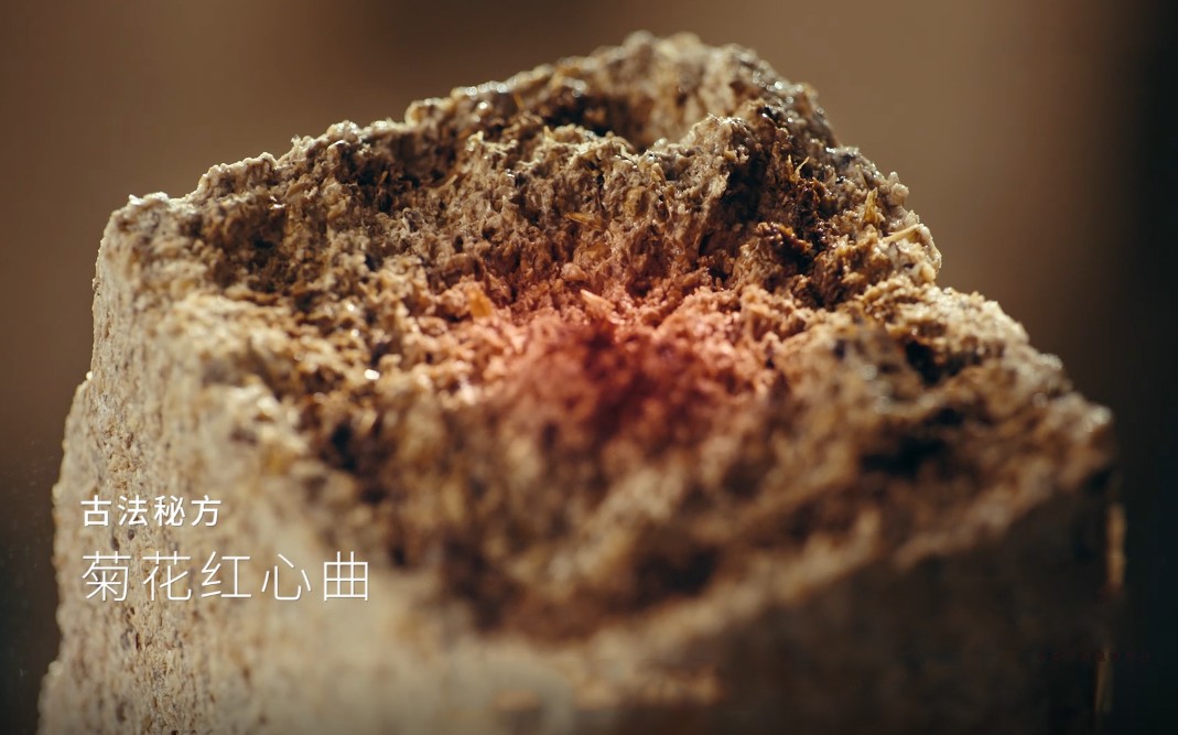 独创的“菊花红心曲”,精选大麦、小麦、豌豆等作为主要制曲原料,采用“拉皮”、“上垛挤潮”等古法制成,曲块剖面呈现“两圈一点红”的独特形态:棕红色的曲心,外围有两道褐色圈纹。酒曲色泽明亮,曲香浓厚,使口子窖酒得以保留延续千年的独有风味。