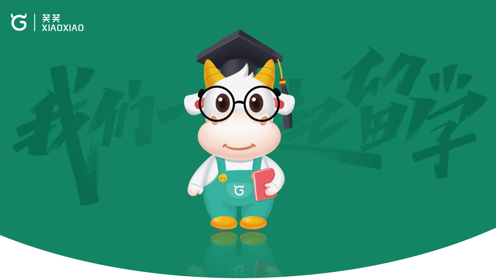 在品牌视觉符号方面,采用的是由“出国”两个字的拼音首字母“CG”组成的牛图形,一方面,小牛谐音小留,基于品牌的目标用户为小留学生。另一方面,牛也代表着忠实可靠,可以增强品牌辨识度,彰显品牌形象,强化用户对品牌的认知。
