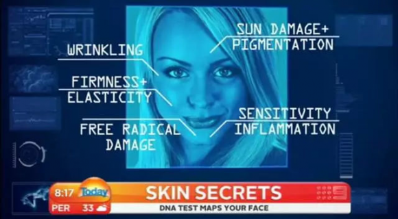 澳洲早间新闻节目《今日秀》对SkinDNA进行专访报道,展示皮肤基因检测的五大类别