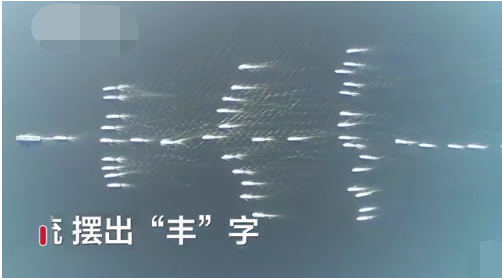 船只摆巨型丰字迎国庆,就象丰收的鱼儿们在奔跑,祈福国富民强风调雨顺。祖国优秀,人民优秀!
