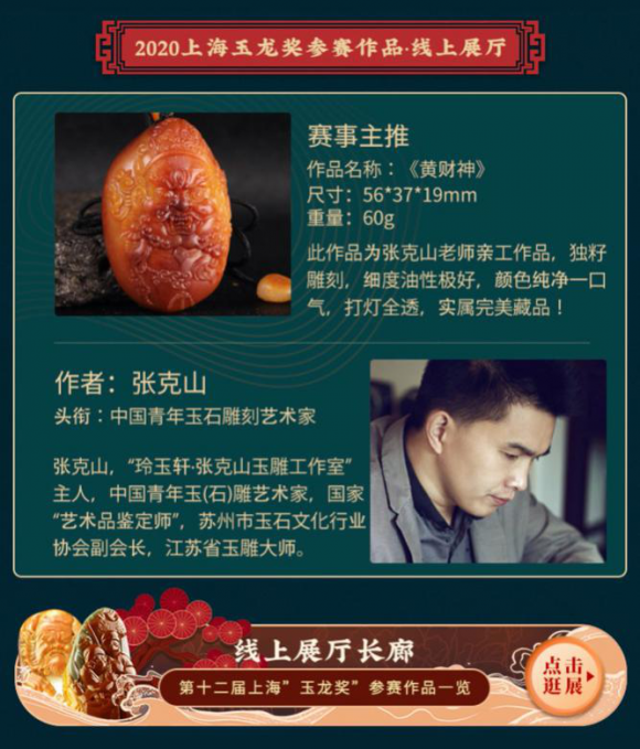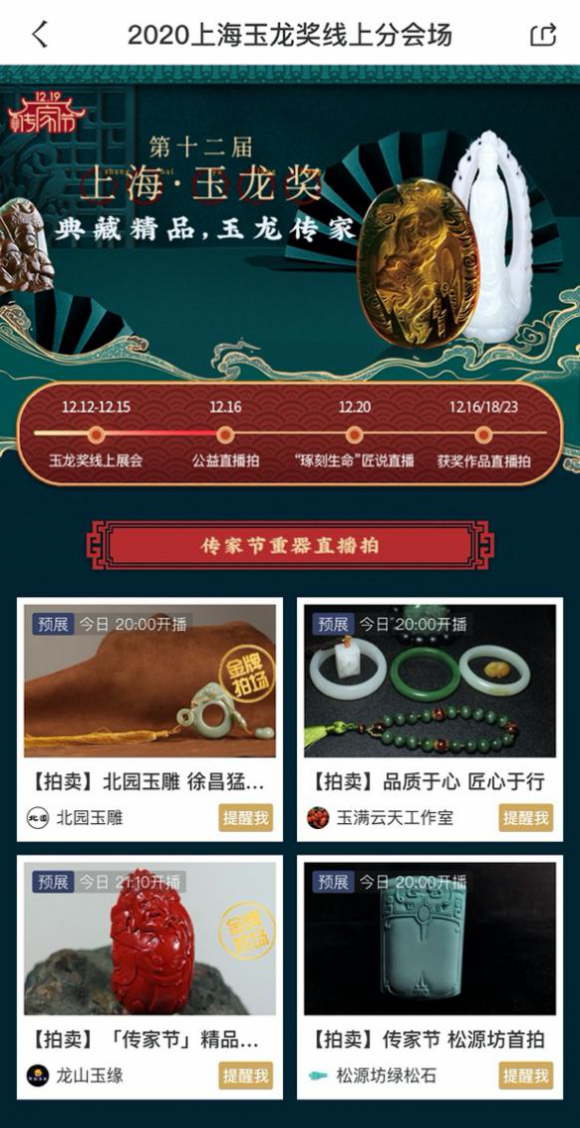 “玉龙奖”是当代中国玉雕行业最重要的评选活动之一,东家APP创始人、董事长朱见山介绍,今年传家节,东家平台以官方指定承办方的身份,举办“玉龙奖线上分会场”,这也是玉龙奖首次开设线上“云会场”。投票通道已开启,还有公益直播拍卖及获奖作品直播拍卖等活动,通过直播可云逛展会。