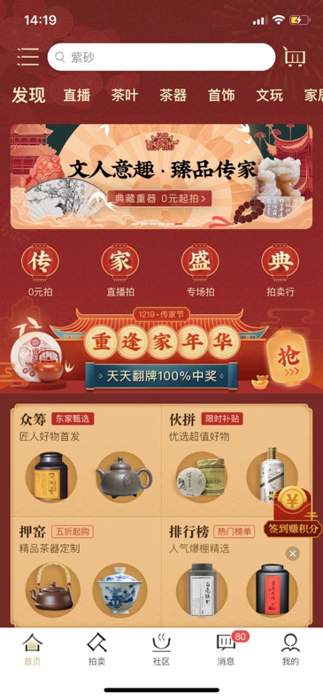 据介绍,12.19传家节作为东家APP一年一度最盛大的活动,是东方美学生活垂直类“双11狂欢节”,已举办了4届,匠人和用户对此已有明确期待。东家传家节也是复星旗下豫园股份(600655.SH)“1219年礼节”的重要补充。。