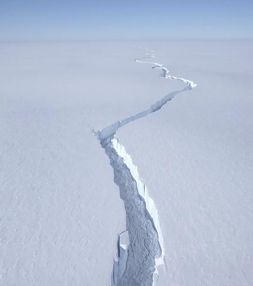 今年1月,“北裂谷”穿透150米厚的冰架,以最快每天1公里的速度向东北方向延伸。2月26日上午,“北裂谷”的宽度在几个小时内达到几百米,最终导致一座面积比纽约市还大的冰山从冰架上脱落。